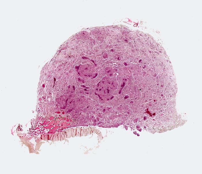 Tumorzellen mit ovalen Kernen ohne Atypien und reichlich Zytoplasma. Keine Mitosen.
