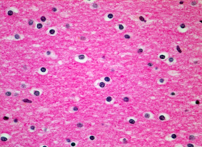 Die wichtigsten mikroskopischen Veränderungen sind die senilen Plaques und die Alzheimer Fibrillenveränderungen. Wesentlicher Bestandteil der senilen Plaques ist das A-beta Peptid, ein Spaltprodukt des Amyloidvorläuferproteins. Immunhistochemisch lassen sich verschiedene Plaqueformen unterscheiden, wobei der Nachweis von neuritischen Plaques entscheidend ist. Neuritische Plaques bestehen aus einem zentralen Amyloidkern, der von dystrophen neuritischen Fortsätzen umgeben ist. In der Umgebung der Plaques findet sich meist eine Mikrogliaproliferation und –aktivierung. Es besteht keine gute Korrelation zwischen der Plaquedichte im Kortex und dem Grad der klinisch erkennbaren Demenz.