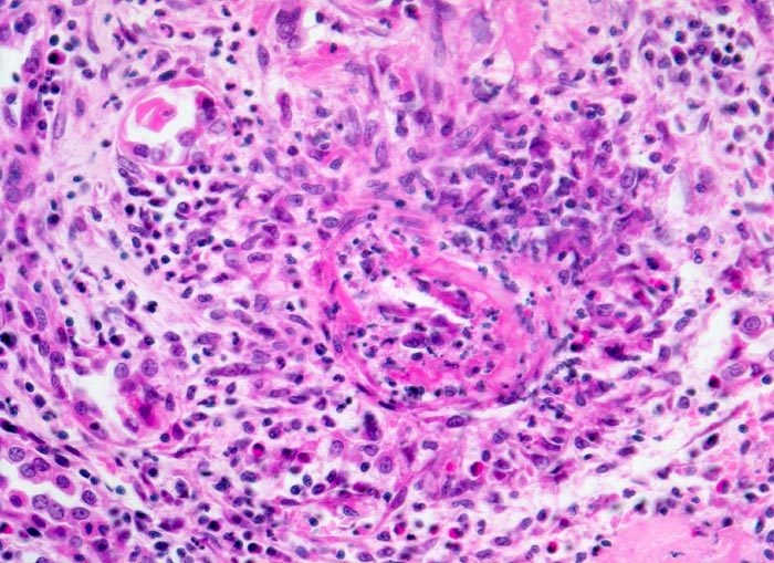 Bei primär systemischer Vaskulitis sollte immer eine histologische Sicherung der klinischen Diagnose angestrebt werden. Biopsien sollten aber nur aus pathologisch verändertem Gewebe entnommen werden (z.B. Magnetresonanztomographie des Muskels zur Wahl des Biopsieortes). Blinde Biopsien haben eine Trefferquote von <30%. Da die morphologischen Befunde verschiedener Vaskulitiden sich überschneiden oder sogar identisch sein können, lässt sich anhand des histopathologischen Befundes lediglich die Diagnose einer nekrotisierenden Vaskulitis stellen mit Hinweis auf die betroffenen Gefässtypen. Für die genaue Klassifikation der Vaskulitis ist die Korrelation mit klinischen Symptomen, radiologischen und laborchemischen Befunden und das Wissen um allfällige zusätzlich vorhandene Begleiterkrankungen unabdingbar.
