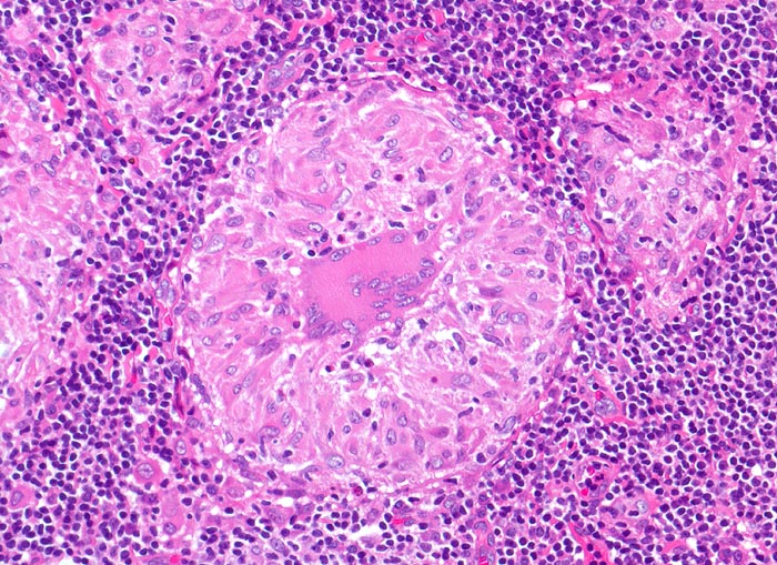 Symptomatik, Diagnostik und Therapie richten sich nach der Ursache der granulomatösen Lymphadenititis. (Weitere Informationen zur Klinik der Sarkoidose im HiPaKu Präparat zur Lungensarkoidose).