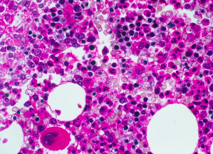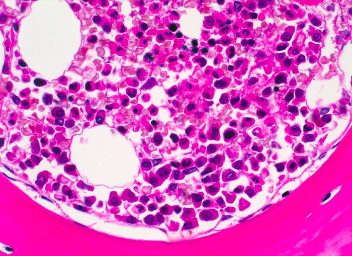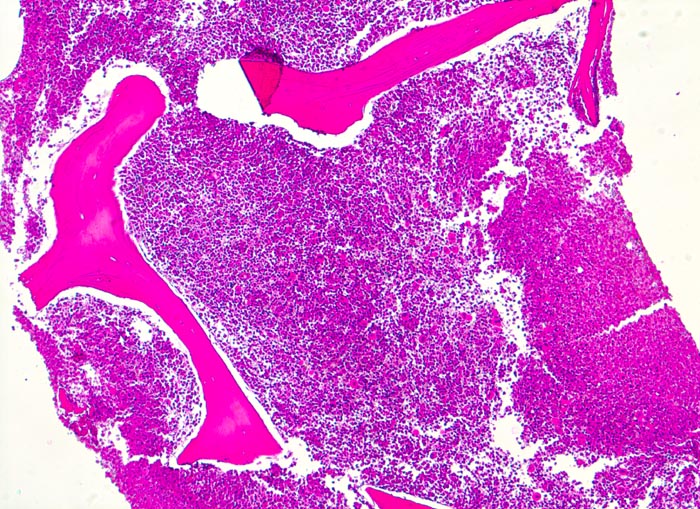 • Fast 100% Zellularität des blutbildenden Marks (praktisch keine Fettzellen, sogenanntes "packed marrow").