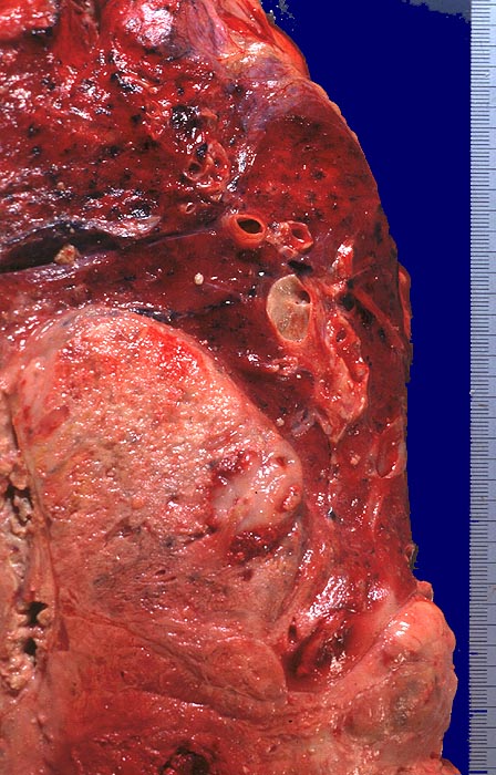 • Teils von einer Kapsel bedecktes Lymphknotenfragment.