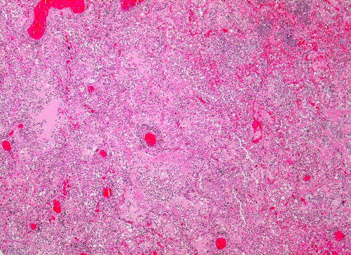 • Herdförmig unterschiedlich stark ausgeprägte Entzündung.