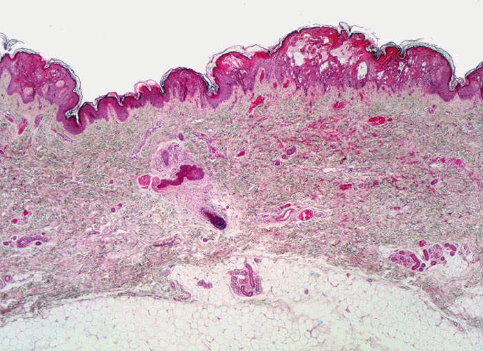 Dichtes gemischtes dermales Entzündungsinfiltrat.
