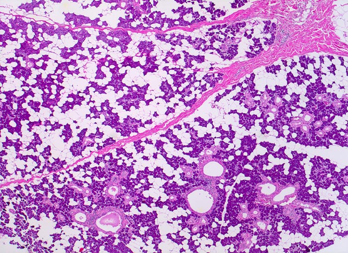 Epitheiale Gänge werden ausgekleidet von kubischen luminalen Zellen und einer oder mehreren äusseren Schichten myoepithelialer Zellen.
