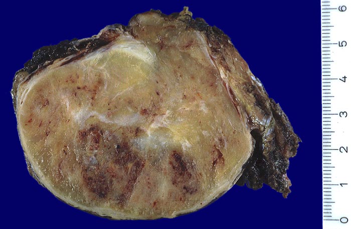 • Biphasischer Tumor mit überwiegend kompakten (Antoni A Muster) und kleinen lockeren, hellen Arealen (Antoni B Muster).