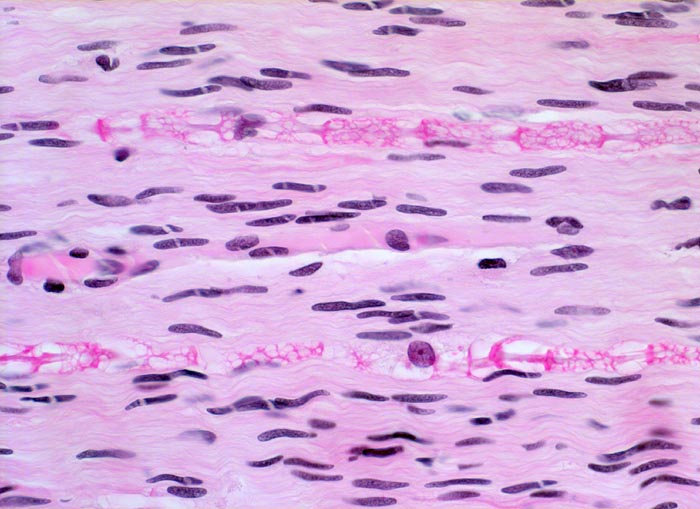 • Antoni A Muster: Parallele Anordnung der Zellkerne und Zellfortsätze (Verocay bodies).