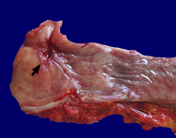 • Falls das Präparat eröffnet wird, Tumor vor dem Öffnen palpieren und Darm auf der gegenüberliegenden Seite eröffnen.