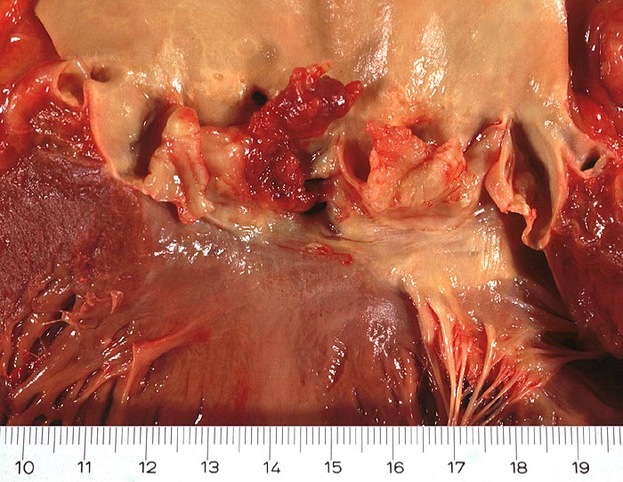 Befallen sind mit absteigender Häufigkeit Mitralklappe (45%), Aortenklappe (35%), Aortenklappe und Mitralklappe (11%), Trikuspidalklappe (6%). Vorhofendokard und Pulmonalklappe sind nur sehr selten betroffen.