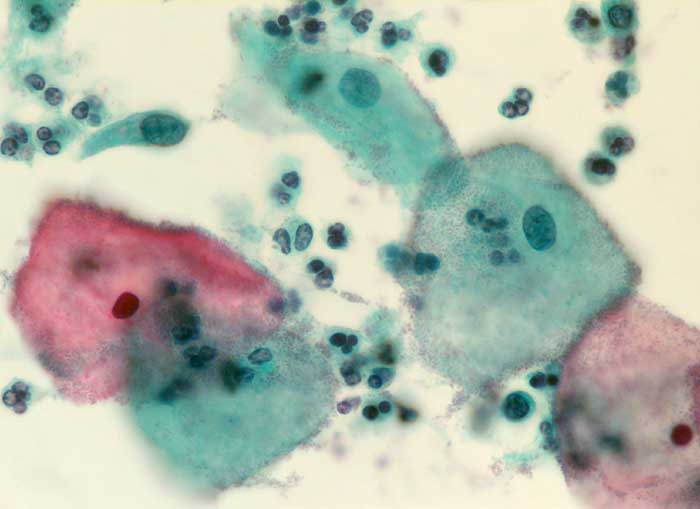 Typisch für die bakterielle Vaginose ist der Nachweis von sogenannten Clue cells. Dabei handelt es sich um Plattenepithelien vom Intermediärzelltyp, die von dicht gepackten kurzen basophilen Stäbchen bedeckt werden. Dadurch erscheinen die Clue cells bereits in der Übersicht dunkelblau. Laktobazillus und Kokken können ein ähnliches Bild verursachen. Der zytologische Befund erlaubt lediglich die Verdachtsdiagnose. Für die definitive Diagnose einer Gardnerelleninfektion ist eine bakteriologische Kultur notwendig.