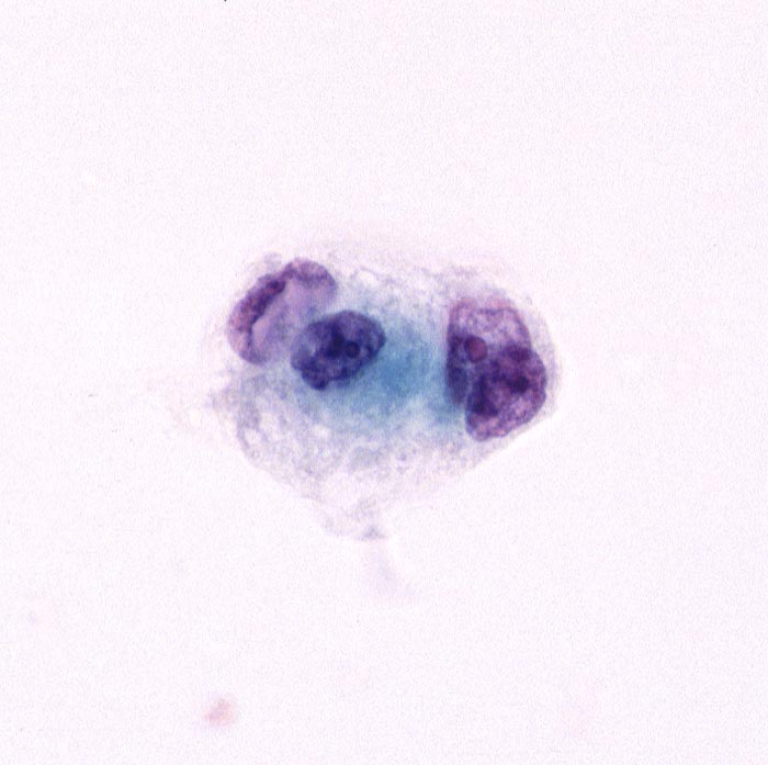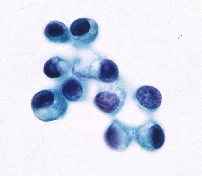 Typisch für das Nierenzellkarzinom sind relative grosse ein- oder mehrkernige atypische Zellen mit exzentrisch gelegenem Zellkern, plumpen Nukleolen und vakuolisiertem Zytoplasma. Der zytologische Nachweis wird dadurch erschwert, dass die Zellen auf ihrem Weg in die Harnblase degenerieren. Der Kern ist oftmals pyknotisch und das Zytoplasma in Auflösung und eosinophil granuliert. Differentialdiagnostisch muss an Tubulus- oder Sammelrohrepithelien gedacht werden.