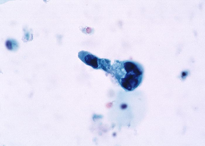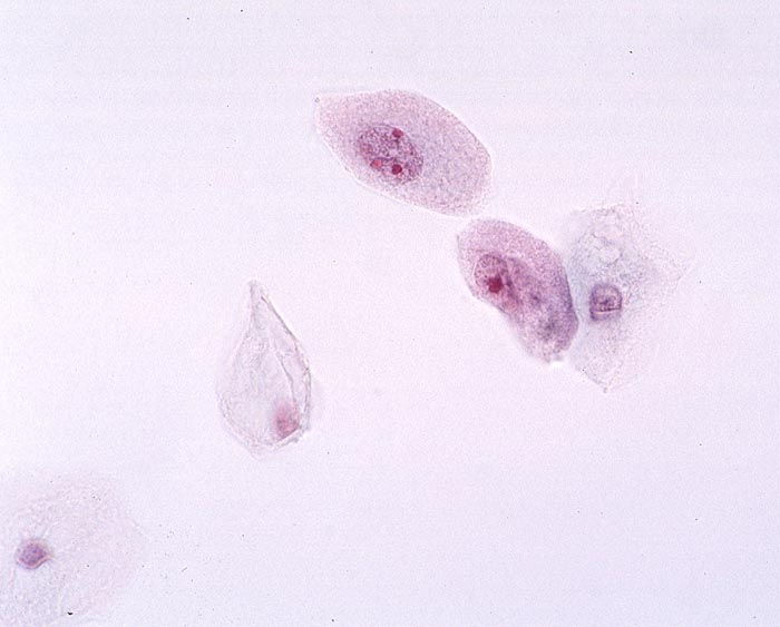 Unter immunsupressiver Therapie mit Azathioprin (erster Fall) kommt es zu einer abakteriellen hämorrhagischen Zystitis. Im Urin findet man neben einer Hämaturie Zellen mit abnorm vergrösserten, aber nicht entrundeten Kernen und homogenen eosinophilen Zytoplasmaeinschlüssen. Degenerativ veränderte Zellen mit pyknotischen Kernen können vorkommen. Die Differentialdiagnose zu einem Urothelkarzinom ist bisweilen schwierig. Nach Mitomycintherapie (zweiter Fall) findet man in den ersten Tagen nach Instillation Detritus und zahlreiche neutrophile Granulozyten. Die Tumorzellen verschwinden etwa eine Woche nach Therapiebeginn aus der Harnblasenspülflüssigkeit. Nach Rückgang der entzündlichen Veränderungen tauchen zunehmend ausgereifte Urothelien mit oft auffallend grossen, aber wenig atypischen Kernen auf. Charakteristisch ist die Diskrepanz zwischen Atypie der Zellkerne und hohem Ausreifungsgrad des Zytoplasmas.