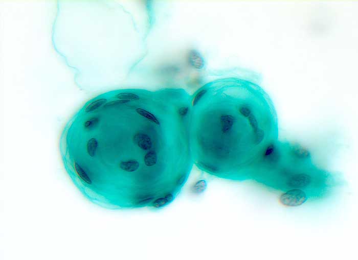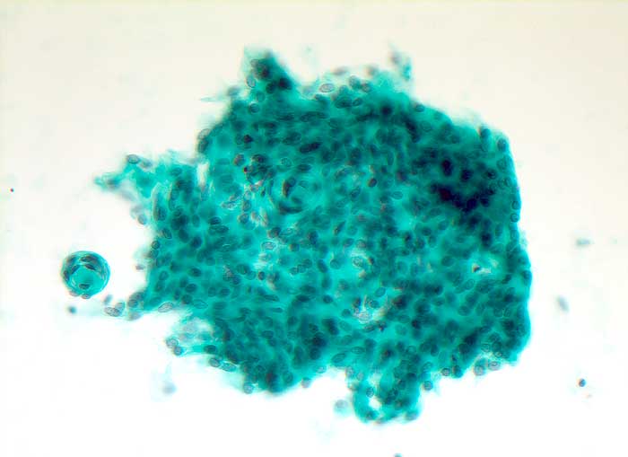 Abstriche und Waschflüssigkeit von Meningeomen sind meist auffallend zellreich. Die Zellen sind in pseudoepithelialen Verbänden gelagert. Charakteristisch sind Psammomkörperchen und zwiebelschalenartig geschichtete meningotheliale Zellkomplexe. Bei bestimmten Meningeomsubtypen sind diese Zellkomplexe jedoch nicht leicht auffindbar. Die Kerne enthalten gelegentlich intranukleäre Vakuolen. Die Zellen anaplastischer Meningeome sind stärker dissoziiert, die Kerne sind hyperchromatisch und pleomorph, Mitosen sind vermehrt.