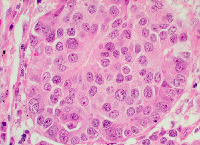 Die Tumorzellen von Keimzelltumoren besitzen ebenfalls meist auffallende Nukleolen. Seminomzellen sind quetschempfindlich und zytoplasmaarm.
