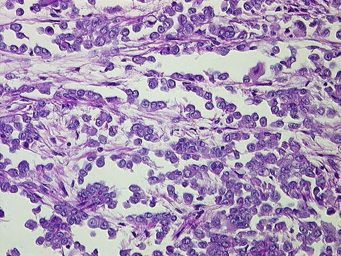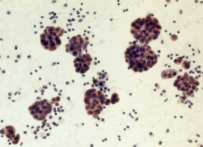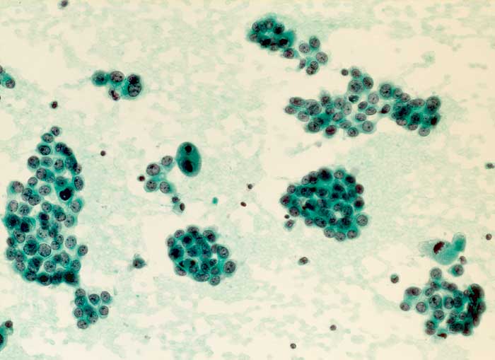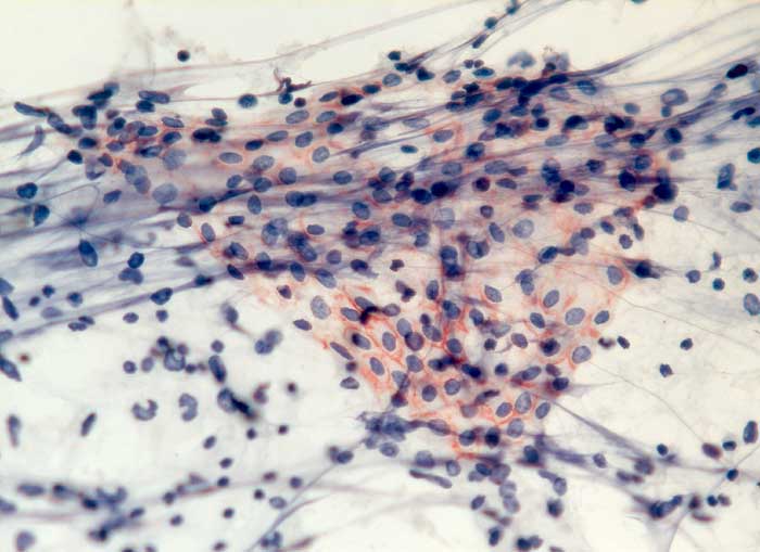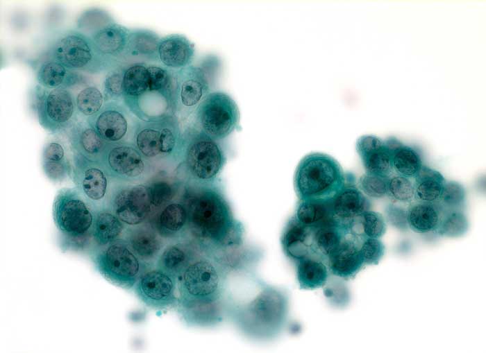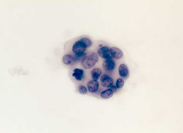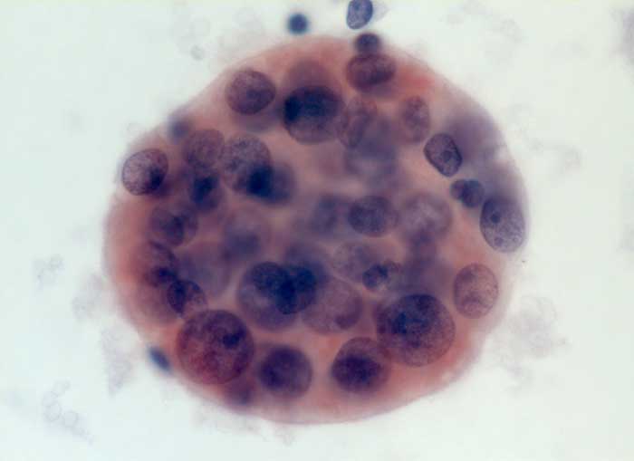 Entscheidend für die Diagnose eines malignen Mesothelioms sind maligne Zellen, die aussehen wie Mesothelzellen. Typisch ist ein Kontinuum von gutartigen, abnormen und malignen mesothelialen Zellen. Die Tumorzellen bilden polyzyklisch begrenzte papilliforme Verbände oder sitzen einem homogenen Matrixkern auf. Zellkannibalismus und lange Zellketten (Indian Files) sind häufig bei Mesotheliomen und selten in gutartigen Ergüssen. Die einzelnen malignen Zellen sind grösser und variabler als gutartige Mesothelien. Oft trifft man auf grosse und mehrkernige Tumorzellen. Das Zytoplasma von Mesotheliomen ist auffallend dicht ,anders als das eher helle Zytoplasma von Adenokarzinomen. Wichtig für die Diagnosestellung ist der Einbezug klinischer und allenfalls immunzytochemischer Befunde.
