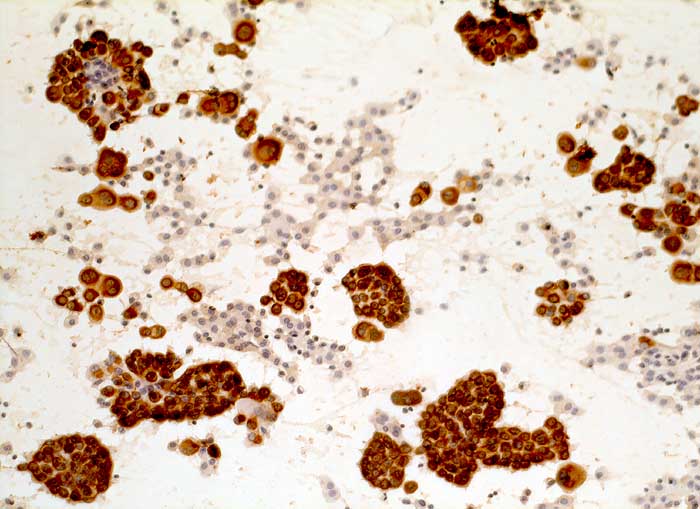 Suchantikörper zur Abgrenzung von Karzinomen von Lymphomen, Sarkomen und malignen Melanomen. Identifikation von Karzinommikrometastasen in Lymphknoten.