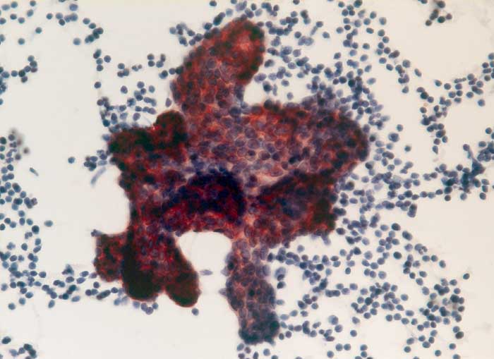 Die papilliformen Verbände des papillären Nierenzellkarzinoms können mit pseudopapillären Verbänden reaktiver Mesothelien verwechselt werden. Die Positivität für BerEP-4 und die Negativität für den Mesothelmarker Calretinin bestätigen die Karzinomdiagnose.