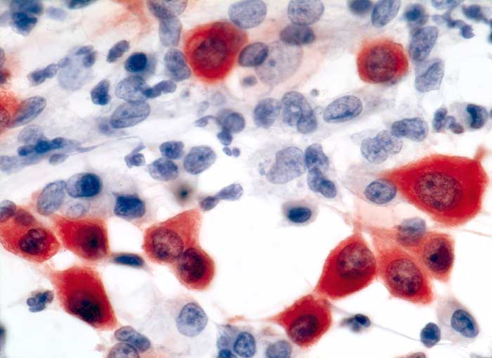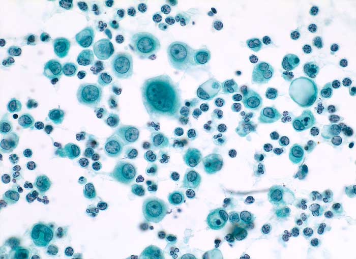 Irritierte Mesothelzellen beginnen zu proliferieren. Die Zellen werden plump und kubisch, die Kerne sind vergrössert. Diese reaktiven Mesothelien können mit Karzinomzellen verwechselt werden. Mesothelzellen können Tumoren imitieren, indem sie kleine Gruppen, Pseudoverbände, Zellballen, Pseudopapillen, "cell in cell" und "Indian files" ausbilden. Unter reaktiven Bedingungen kommen sehr grosse und mehrkernige Mesothelzellen vor. In Zweifelsfällen empfiehlt sich eine immunzytochemische Untersuchung mit Calretinin (Mesothelien positiv) und BerEP4 (Karzinomzellen positiv).