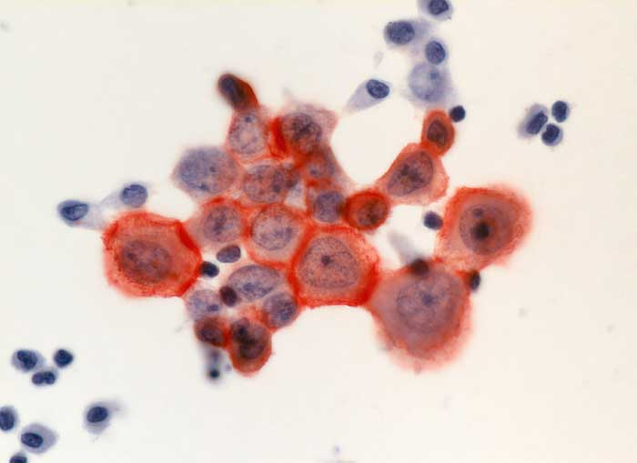 Reaktiv veränderte Mesothelien können Zellen eines Adenokarzinoms sehr ähnlich sehen. Mesothelien sind im Gegensatz zu Karzinomzellen jedoch Ber-EP4 negativ und Calretinin positiv. Ungeeignet für die Differentialdiagnose ist CA 125, ein Tumormarker für seröse Ovarialkarzinome. Dieser Marker ist sowohl in Adenokarzinomen als auch in Mesothelien und Mesotheliomen in einem sehr hohen Prozentsatz positiv.