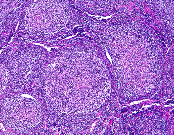 • Fehlen von Kerntrümmermakrophagen in den Keimzentren.