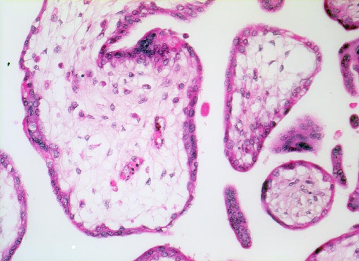 Der maternofetale Stoffaustausch geschieht über die syncytiokapillären Membranen der Zottenoberfläche und erfordert eine fortschreitende Zottenverzweigung und Reifung der Zotten, um im Verlauf der Schwangerschaft an Kapazität mit dem Wachstum des Feten Schritt zu halten.