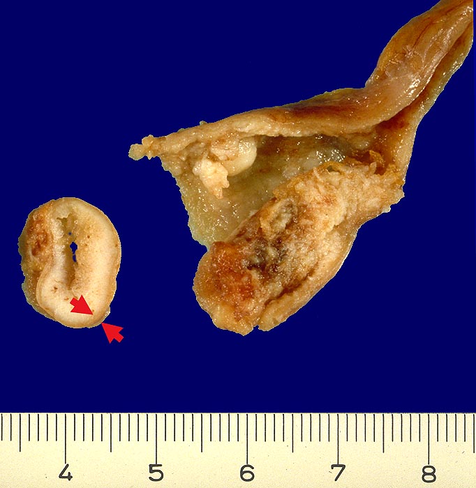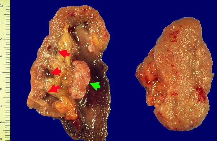 Morphologie: Pathomorphologisch unterscheiden sich Urothelkarzinome bei Phenacetinabusus nicht von sporadischen Urothelkarzinomen abgesehen von ihrer bevorzugten Lokalisation im Nierenbecken und der allenfalls ausserhalb des Tumors in der Harnwegsschleimhaut nachweisbaren Kapillarosklerose.