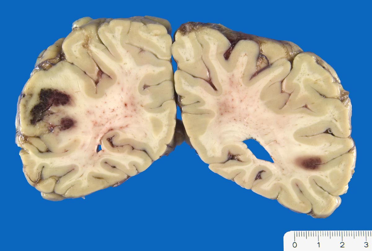 Durch die alleinige Untersuchung des Hirngewebes lässt sich die Ursache des Infarktes oftmals nicht ableiten. Manchmal gelingt eine eindeutigere ätiologische Zuordnung durch Beachtung der Zusatzbefunde (Makroangiopathie, Emboliequelle...).
