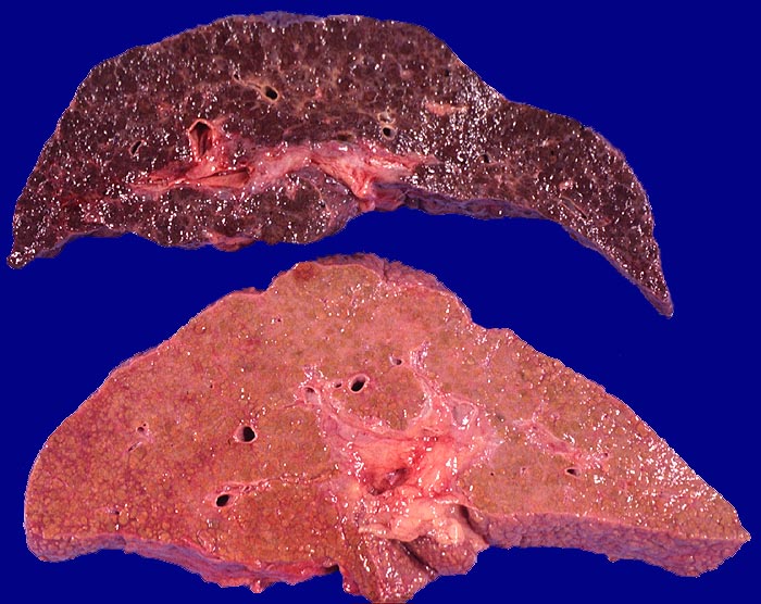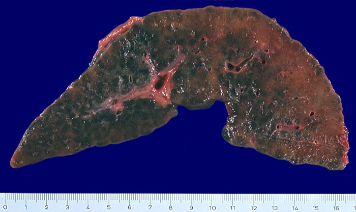 Die Stadieneinteilung nach Ludwig unterscheidet vier Stadien. Im vorliegenden Fall liegt das Endstadium vor (Zirrhose).