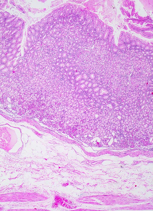 Die ersten beiden Typen entsprechen histologisch meist einem intestinalen Typ nach Lauren (> 1342). Diese Tumoren sind scharf begrenzt, bilden tubuläre oder papilläre Strukturen wie die Dickdarmkarzinome, sind meist assoziiert mit bekannten umweltbedingten Risikofaktoren und haben eine bessere Prognose.
