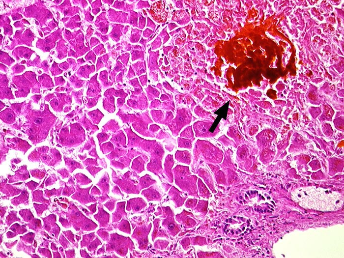PathoPic ID 886 - Galleinfarkt bei extrahepatischem Verschlussikterus