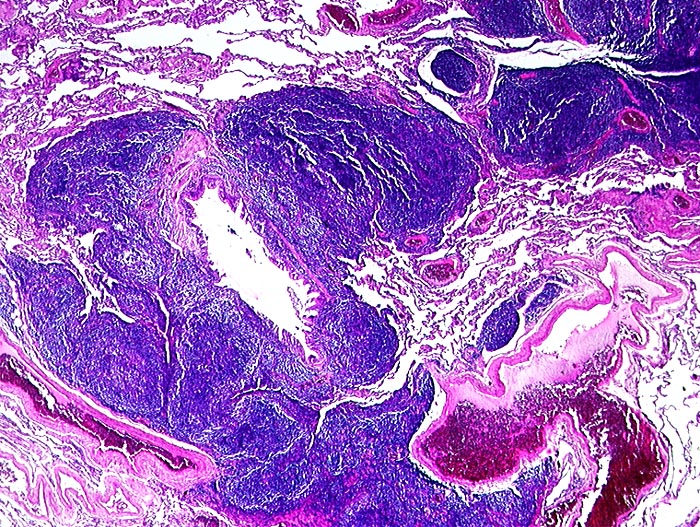 Altersgipfel pulmonaler MALT Lymphome 6.-7. Dekade. Meist solitärer Rundherd, weniger häufig multinodulärer Befall und Pleuraerguss. Bei der Mehrzahl Stadium IE initial. Sehr indolenter Verlauf mit günstigster Prognose aller extranodalen Marginalzonen Lymphome.