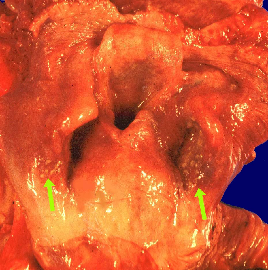 Oropharynxschleimhaut mit runden, leicht erhabenen