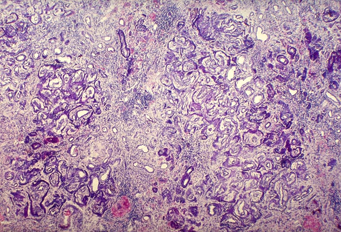 In klassischen Fällen der metastatischen Verkalkung z.B. bei primärem Hyperparathyreoidismus beginnt die Verkalkung in den Basalmembranen. Folge einer schweren Nephrokalzinose sind interstitielle Fibrose und Entzündung.