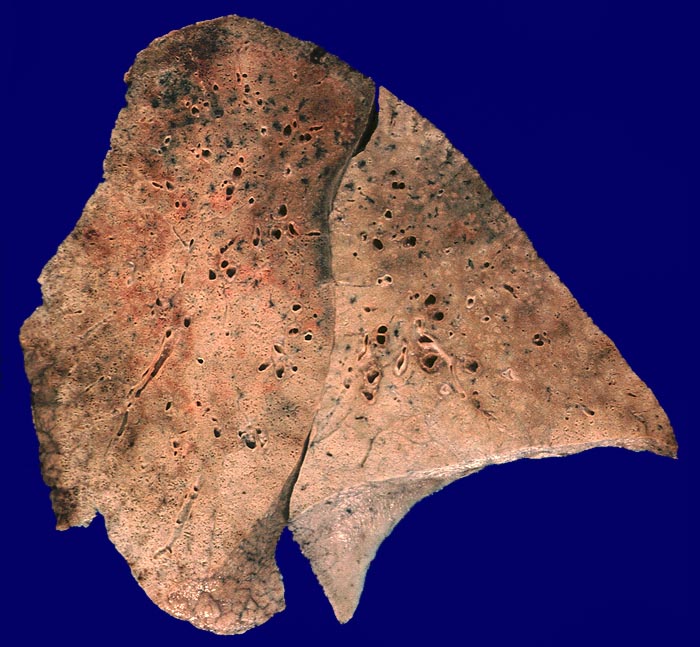 Stark erhöhte Konsistenz des Lungenparenchyms. Auffallend helle Farbe aufgrund der Anämie.