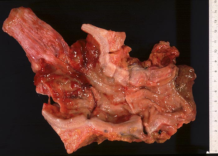 Gastrektomiepräparat unfixiert. Links im Bild die distale Speiseröhre.