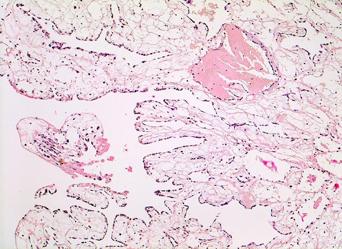 Tumor aus fingerförmigen Formationen mit ödematösem myxoidem Stroma. Fokale Stromablutungen.