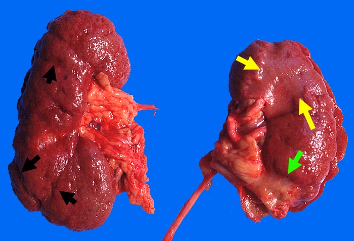 Niereninfarktnarbe und vaskuläre Nierenrindennarben entstehen durch vollständige Okklusion unterschiedlich grosser versorgender Arterien. Der Subinfarkt entsteht bei unvollständigem Gefässverschluss mit Verminderung der Durchblutung. Daraus folgt eine Atrophie und Fibrose des Gewebes, nicht jedoch eine Nekrose.