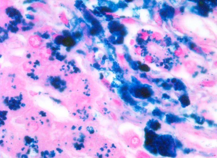 Grobgranuläre Eisenpigmentablagerungen in Hepatozyten, Gallengangsepithel und Kupffer'schen Sternzellen.