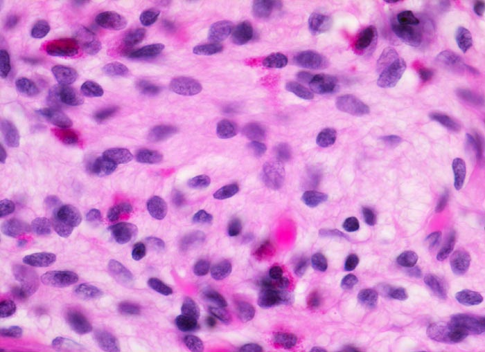 Schwann Zell Proliferate durchmischt mit eosinophilen Granulozyten in der Lamina propria.