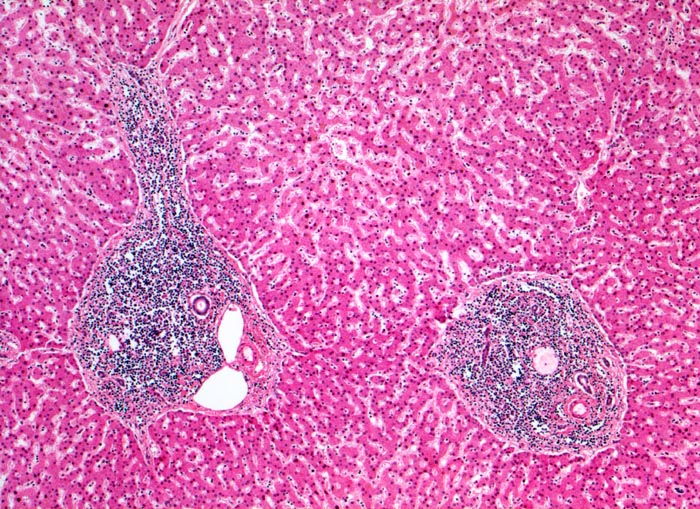 PathoPic ID 3412 - Infiltration der Portalfelder: chronische lymphatische Leukämie (CLL)