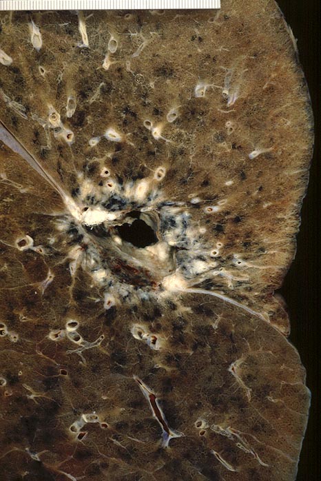 ausgedehnten Nekrosen. C5: T3N0M1, Metastase des linken Unterlappens, Metastase des 7. Brustwirbelkörpers