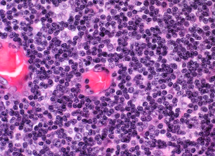 Zwischen den Lymphfollikeln gelegene parakortikale Zone mit Lymphozyten (meist T Lymphozyten) und vereinzelten Immunoblasten mit zentralem Nukleolus. Hochendotheliale Venolen mit rezirkulierenden Lymphozyten.