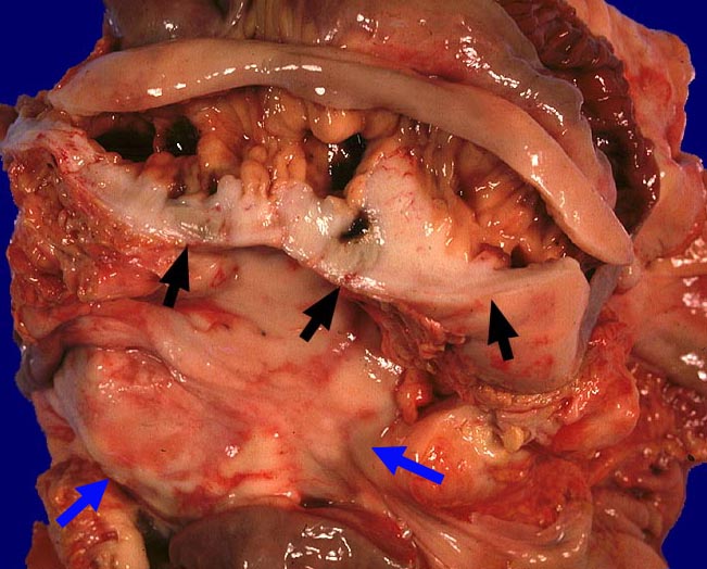 Eröffnetes Jejunum mit anhaftendem Mesenterium. Das