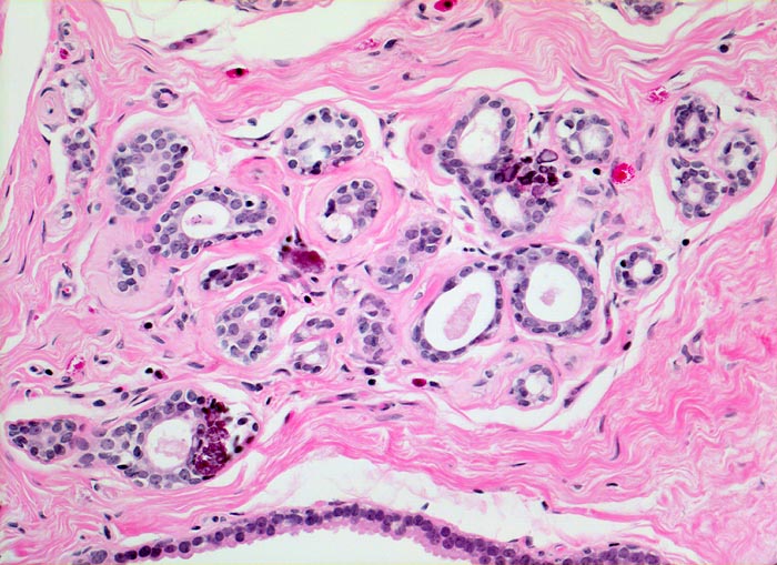 Fibrosiertes Läppchen mit Mikroverkalkungen.
