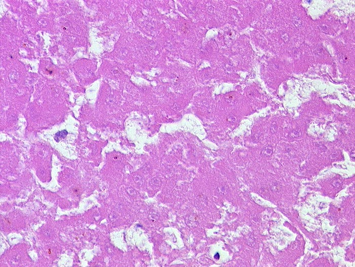 PathoPic ID 528 - Hepatozelluläres Karzinom: Tumornekrose nach Ethanolinjektion