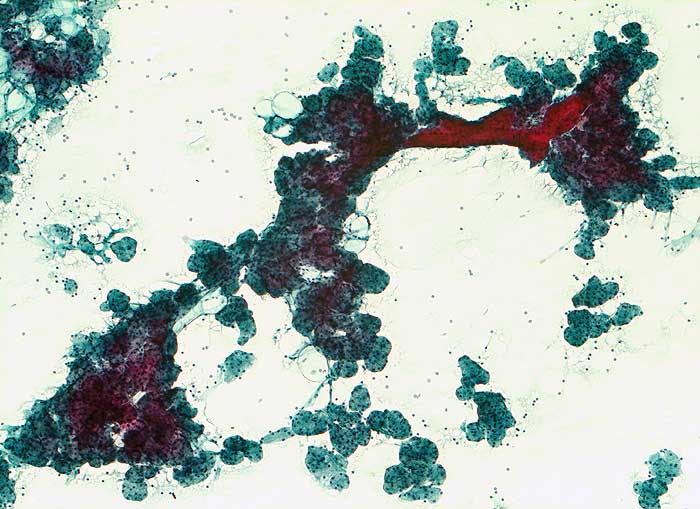 Nicht neoplastische Vergrösserung der Speicheldrüsen. Zytologisch lässt sich die Diagnose aufgrund des klinischen Hintergrundes und des Fehlens neoplastischer oder entzündlicher Veränderungen stellen.