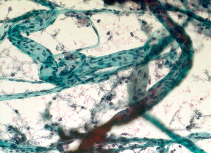 Schnellschnittflüssigkeit Hirn temporal rechts: dichte Ansammlungen von Kapillarrippen.