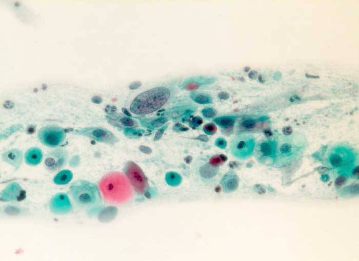 Zytologische Diagnose: Verdacht auf Plattenepitheldysplasie.