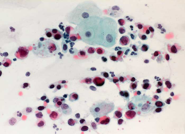 Portioabstrich: Im zervikalen Abstrich erkennt man neben ortsüblichen Elementen