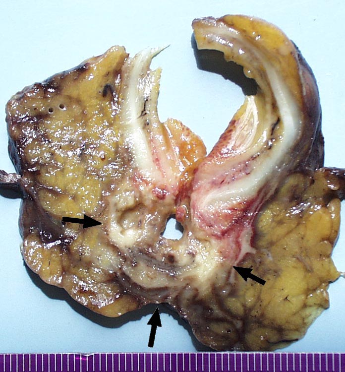 Entzündlich zerstörtes Divertikel mit abszedierender Entzündung.